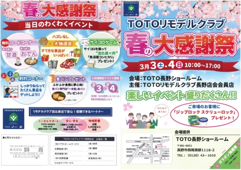 TOTOリモデルクラブ長野店会主催の感謝祭を開催します!!