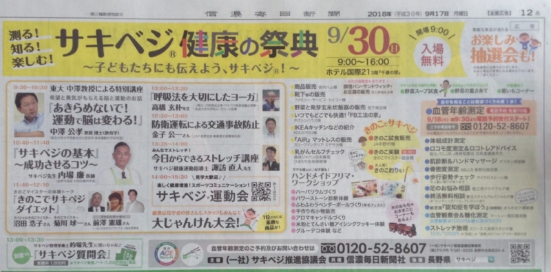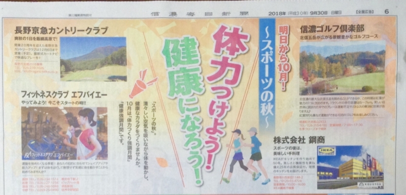 スポーツの秋 体力つけよう!健康になろう! 地元信濃毎日新聞に掲載いたしました。 健康の基本...more