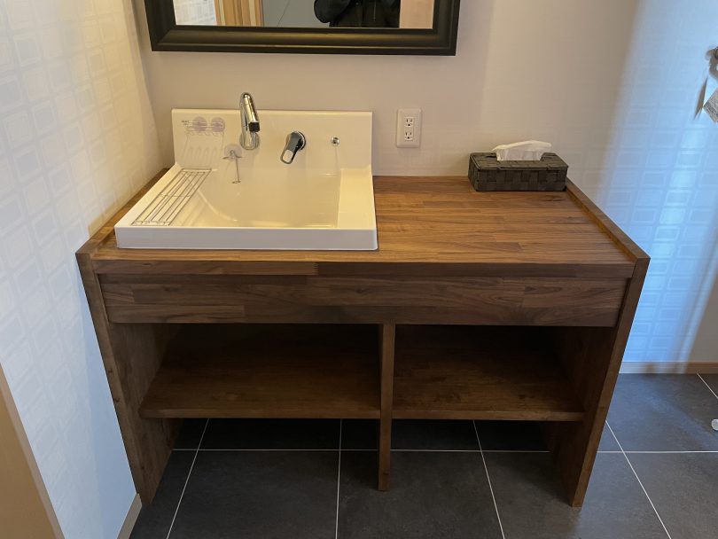 軽井沢ログハウスにてIKEAミニキッチン/洗面台を導入