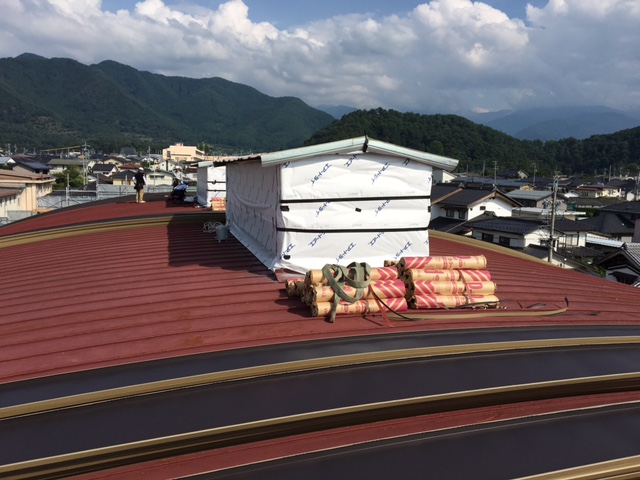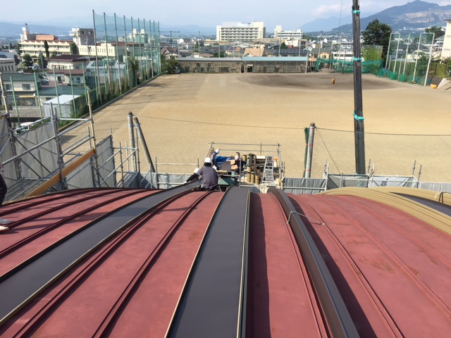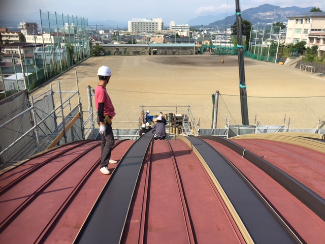 体育館のかまぼこ形状の屋根改修工事の現場成型を行いました。