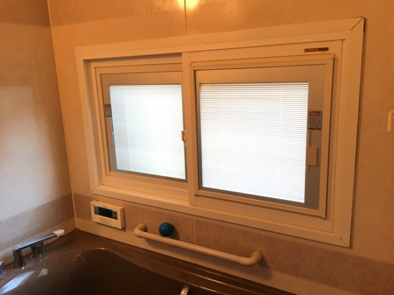 ガラスの間にブラインド、お風呂の内窓設置工事