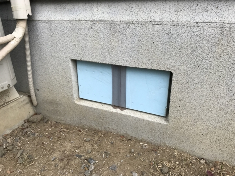 さらに追加で床下換気口をスタイロフォームで塞ぎました。