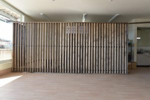 和モダンのコセプトから パーテーションを木製を採用
