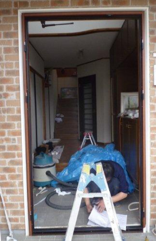 築12年の島田邸、ペットのいたずらで玄関ドアが傷み、ドアの下から隙間風が入り込む状態でした。