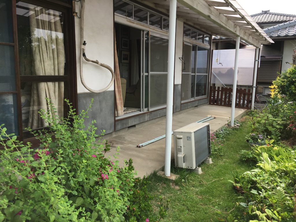 外で洗濯を干すのにテラス窓から一段降りないと洗濯物が干せませんでした、