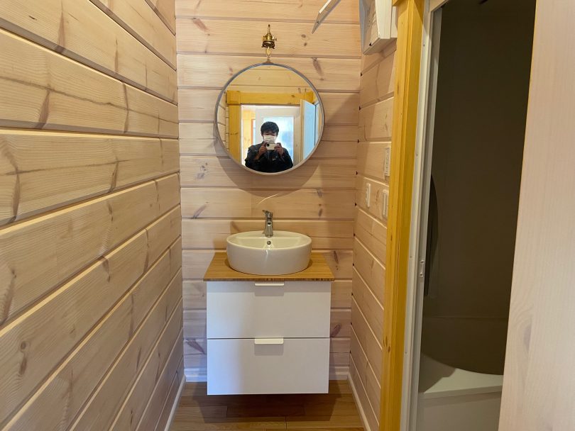 軽井沢の新築のログハウスにてIKEAミニキッチン/洗面台を設置させていただきました。